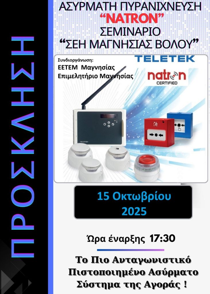 ΣΕΜΙΝΑΡΙΟ ΑΣΥΡΜΑΤΗΣ ΠΥΡΑΝΙΧΝΕΥΣΗΣ “NATRON” ΤΕΤΑΡΤΗ 15 ΟΚΤΩΒΡΙΟΥ 2025 ΩΡΑ 17.30